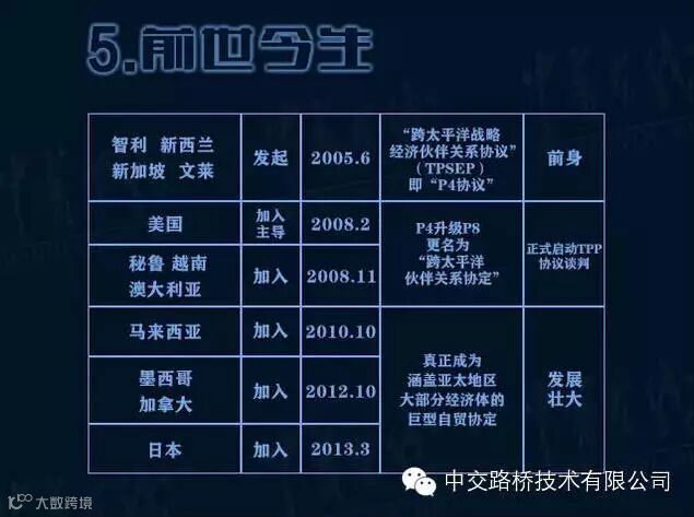 “跨太平洋战略经济伙伴协定”(TPP)最初由智利、新加坡、新西兰、文莱于2005年发起,其最重要的特点是相互取消关税。由于最初参与方经济体量较小,这一协定原本少人关注。2008年美国宣布加入,提出要创建一个高标准、更广泛的地区合作协定,此后热度渐高。澳大利亚、秘鲁、越南、日本等国在此后几年陆续加入。