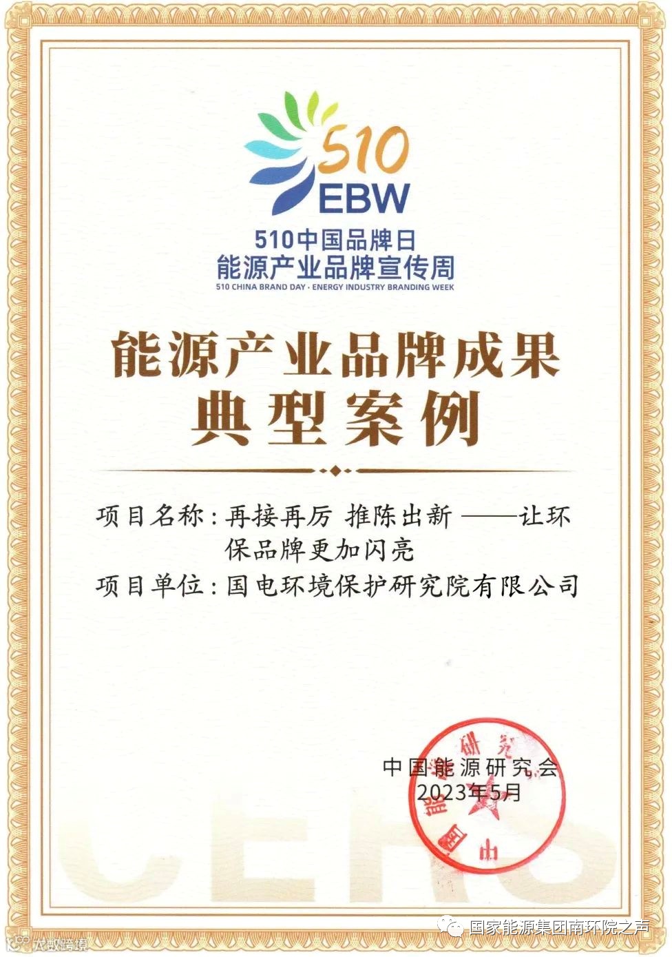2023年能源产业“绿能星·高质量系列奖项”评选是“510中国品牌日·能源产业品牌宣传周”活动的重要环节,通过中国能源产业品牌发展的高端交流平台展示自身成果,分享自身经验,生动讲述了环保院的品牌故事。