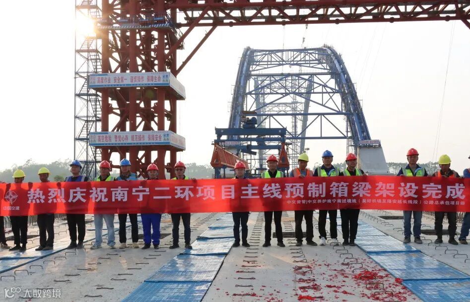 南宁二环项目主线预制箱梁架设圆满完成