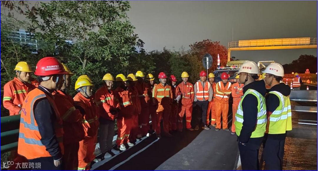 南宁养护项目团队按照“135”应急体系(1分钟接警响应、30分钟联动部署、5小时物资集结)进行部署,4:30准点断电后,施工团队仅用58分钟便完成设备定位升降,2小时内完成脱落湿接缝清理工作,创造了跨铁抢险新速度,为复杂交通枢纽维修养护应急抢修提供了宝贵经验。