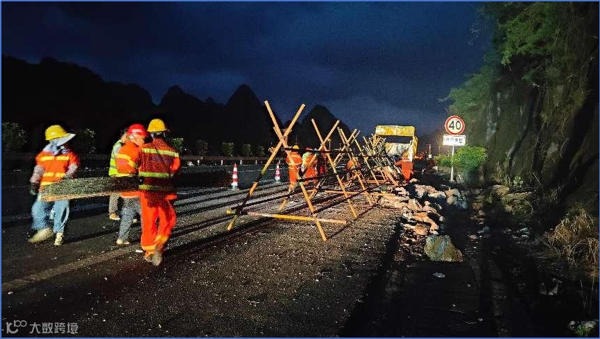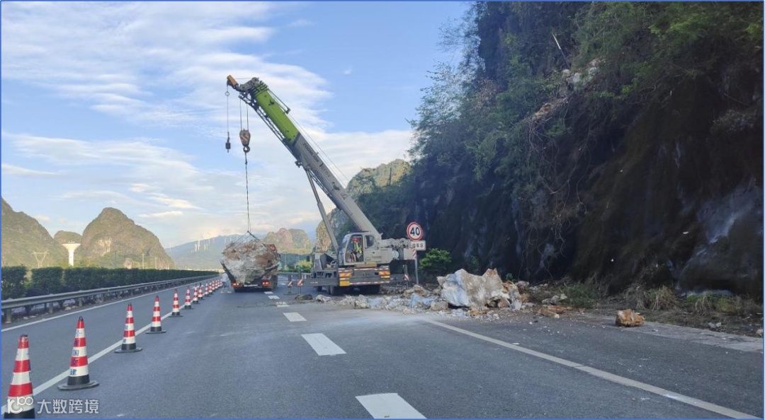 5月19日下午3时,S52平那高速K236+100路段发现山体存在多处落石隐患,部分石块已滚落至路面,严重威胁过往车辆通行安全。险情就是命令,广西交投南宁运营公司与公司南宁养护项目部第一时间组建临时指挥部,启动防汛救灾应急工作预案,组织应急抢险队伍在30分钟内奔赴现场进行处置。