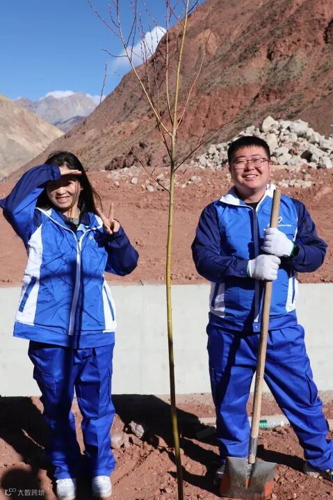 活动现场,志愿者们在项目生活区内种植了树苗。大家干劲十足,分工合作,以饱满的热情投入到植树活动中,一起挥锹铲土,栽种绿树,培土浇水,在大家共同努力下,新栽的树苗整齐排列、迎风挺立,焕发出勃勃生机,为项目增添一抹新绿。