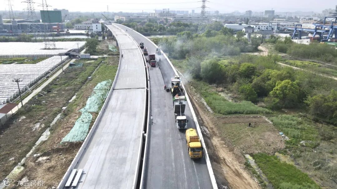 春节前,跨塘桥实现主桥全部贯通,实现了非机动车临时通行。本次沥青摊铺标志着跨塘桥距离正式通车更近一步。