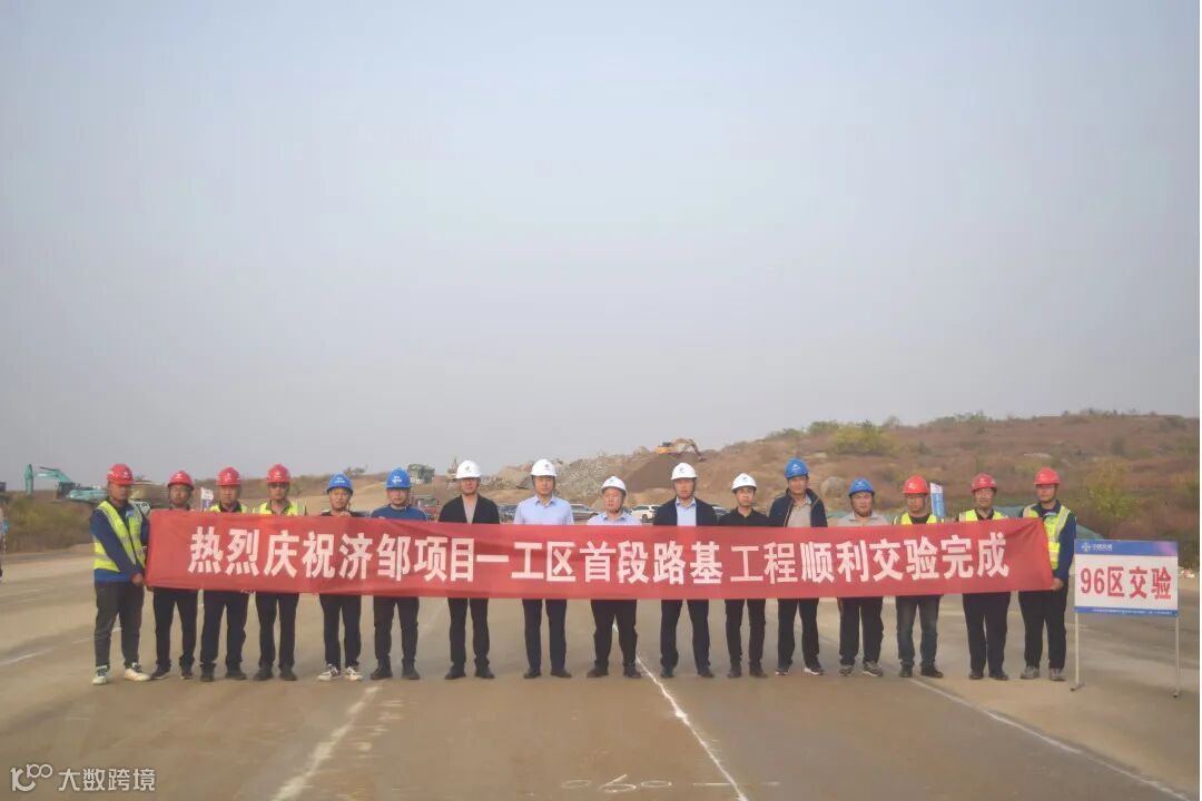 10月26日,山东济邹项目进行了济邹高速全线首段路基工程交工验收工作。本次路基交验里程为 K2+930-K3+425.6,全长 495.6m,路基宽度 27m。首段路基的顺利交验,标志着山东济邹项目路基施工取得阶段性胜利,为后续施工建设的顺利推进奠定了坚实基础。