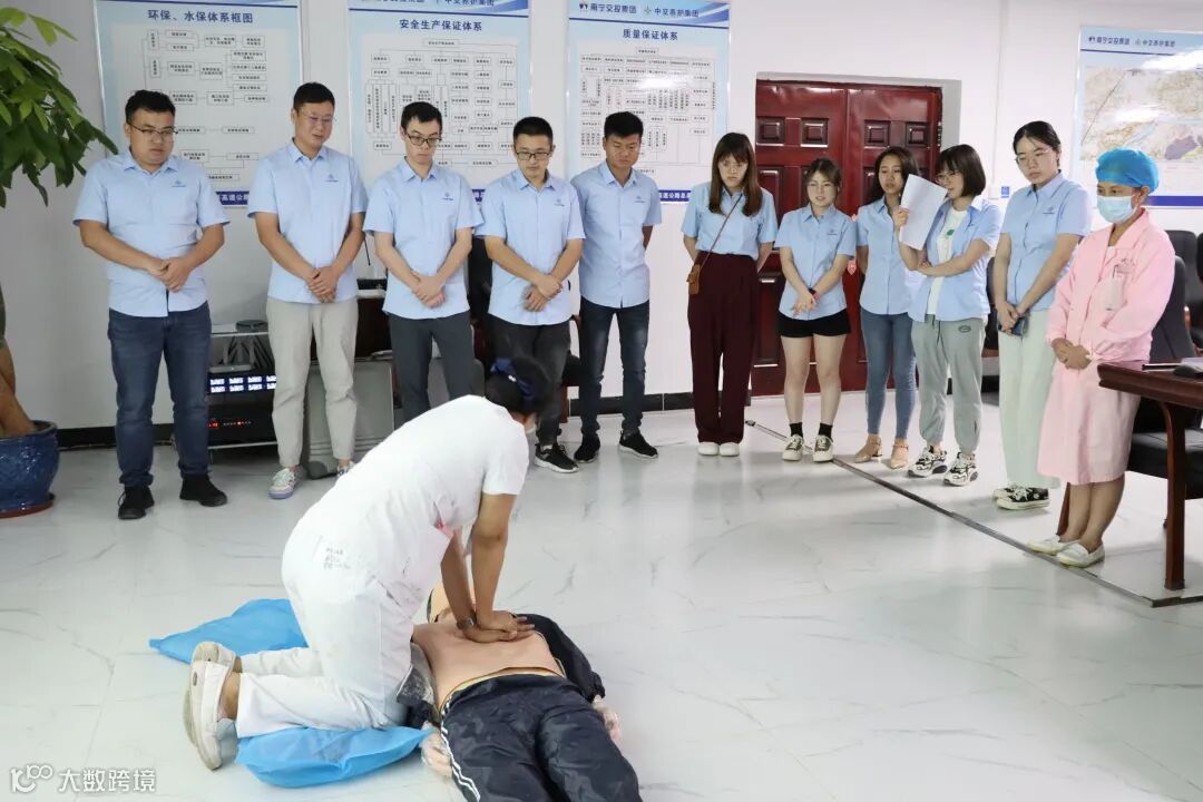 6月23日南宁二环项目联系专业医护人员在项目部开展了溺水、触电事故现场急救方法培训。