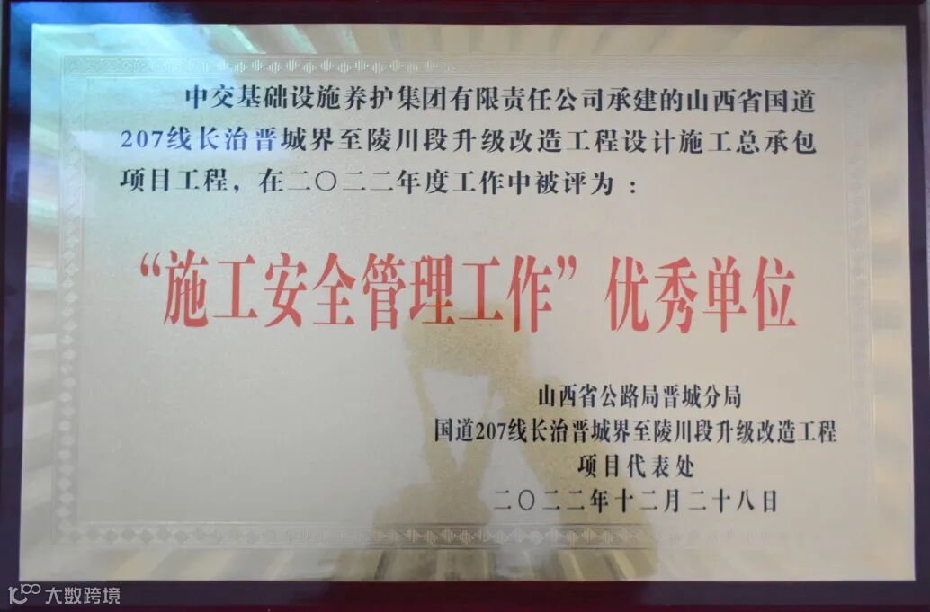 近日,山西207项目因安全管理、环保、安全标准化工地及文明施工等方面管控到位、措施有力、成绩突出,被晋城公路分局授予“‘施工安全管理工作’优秀单位”称号,项目员工冯宪弟和翁朝雄被评为二0二二年度安全生产管理工作“优秀个人”。