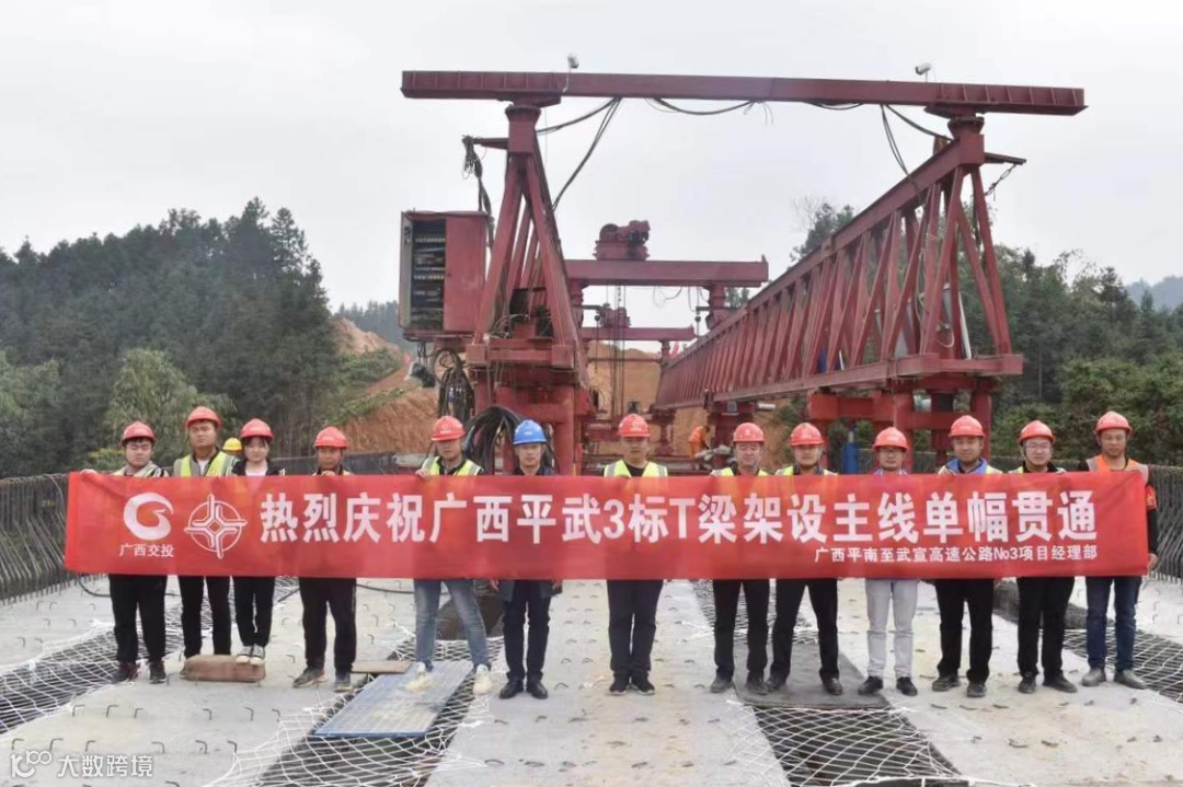 1月5日上午,随着架桥机缓慢下降,平武3标项目蒙冲大桥左幅最后一榀T梁架设安装完毕,标志着平武3标项目部T梁架设主线除贵宾隧道关键线路外单幅贯通,实现了平武路首个单幅贯通的目标。