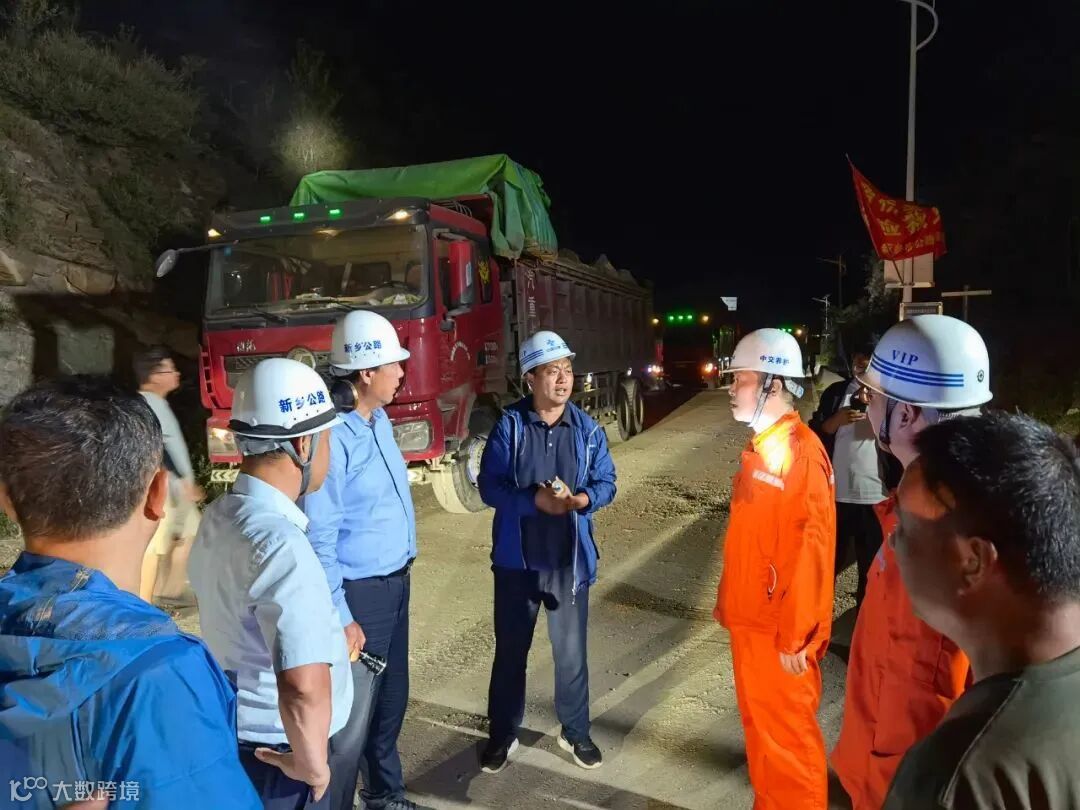 上午9时,交通运输部公路局养护保通处一级调研员蔡小秋、河南省交通运输厅公路管理局工程处处长尚刚等一行来到省道227卫辉山区段抢修保通现场,关切山区生命通道打通进展情况,指导道路水毁修复工作,并对公司救援队顺利完成断点一给予肯定。