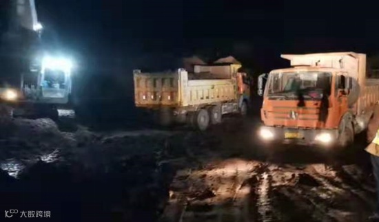 夜里,他们身披雨衣,脚穿雨鞋,轮流值守,驻扎半店,对夜间经过的大型车辆进行交通指挥,在黑暗中形成一道耀眼的光,此时此刻,印有中国交建的反光背心也尤为耀眼。