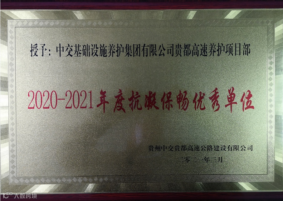近日,贵州中交贵都高速公路建设有限公司发文对公司贵都高速养护项目部进行了表彰,对贵都养护项目部全体员工在2020年贵都高速冬防春运抗凝保畅工作中不畏严寒、不辞辛苦、坚守岗位,保障低温凝冻恶劣天气期间的安全畅通给予充分肯定,授予项目2020年度冬防春运抗凝保畅工作先进单位,并奖励1万元。