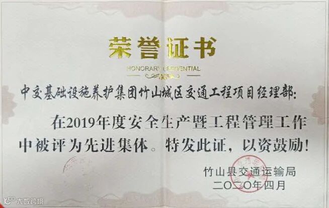 在刚刚结束的2020年竹山县交通运输工作会上,竹山项目被评为竹山县交通运输局2019年度安全生产暨工程管理工作“先进集体”。