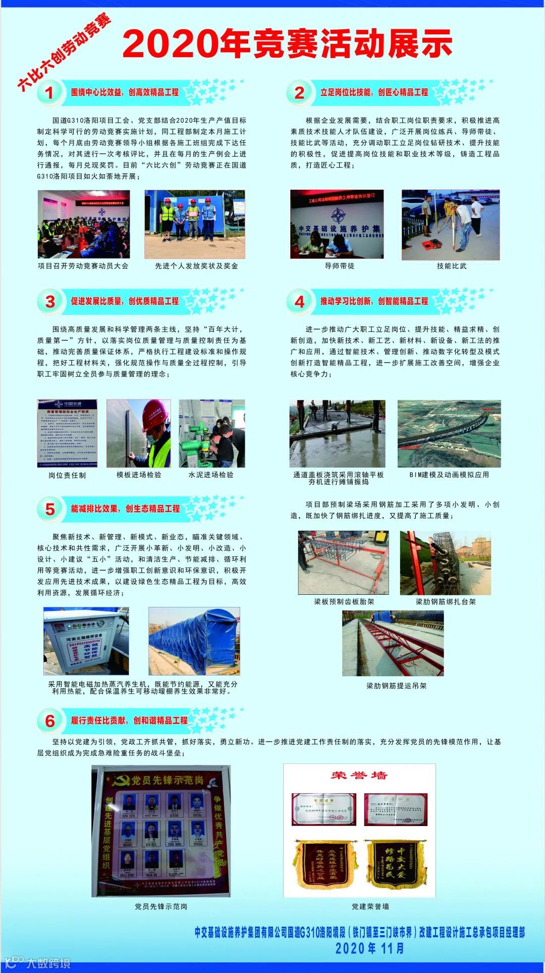 国道G310洛阳项目2020年“六比六创”劳动竞赛活动展示如下图: