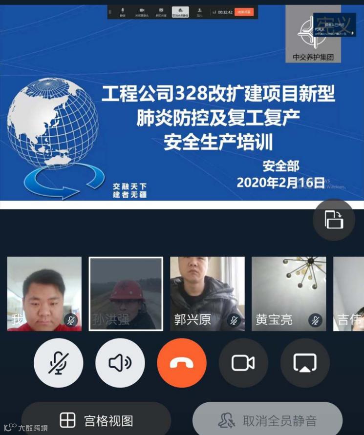 疫情期间,项目通过钉钉组织开展了题为“新冠肺炎疫情防控及复工复产”的安全培训,培训内容以安全生产思维防控疫情、普及疫情防护知识、疫情心理健康为主。此外,项目多次召开疫情防控和复工复产视频会议,明确分工,为复工复产奠定了基础。