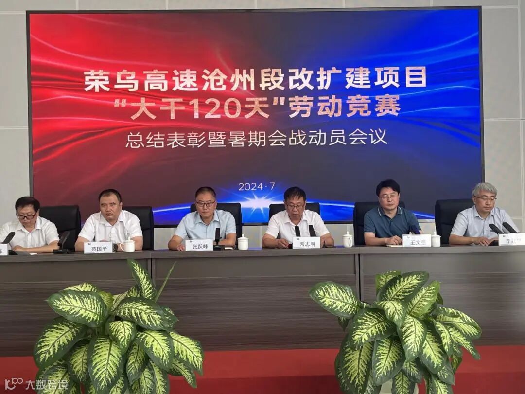 7月18日,沧州交发集团荣乌改扩建项目中心召开"大干120天”劳动竞赛总结表彰暨暑期会战动员会议。沧州交发集团副总经理常志明,建设管理部经理王文强,项目中心经理张跃峰出席会议,副经理李红星主持会议。