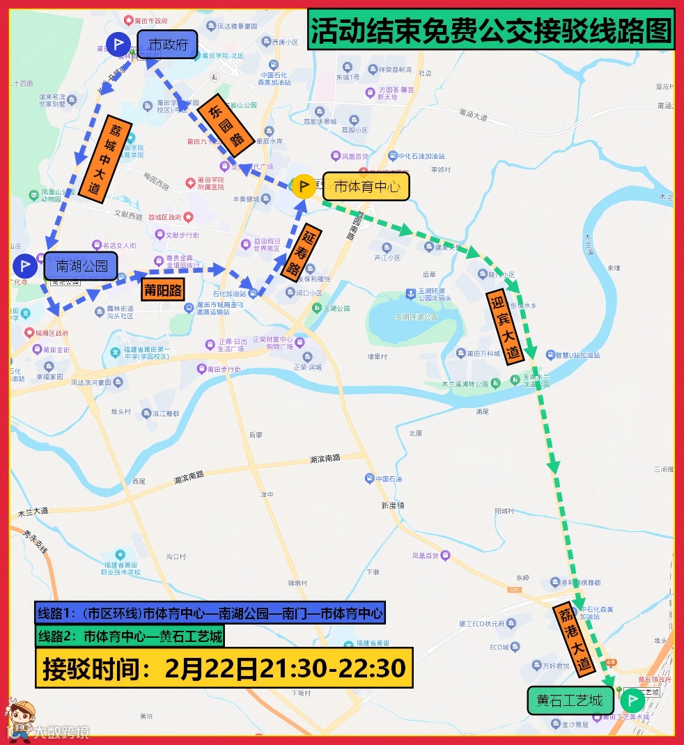 2月22日(农历正月初六),“洪婷之夜” 足球邀请赛、翁杰演唱会将在市体育中心精彩上演,为方便广大市民前往观赛、听歌,我市特开通免费公交接驳线路,覆盖进场前接驳与散场后疏散全时段,这份超详细接驳指南请收好,让你的出行更顺畅!
