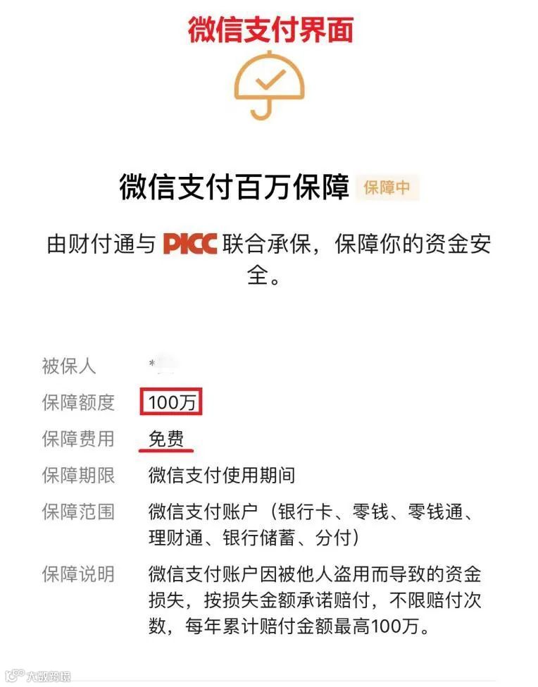 “百万保障”是指微信支付账户、支付宝账户因被他人盗用而导致资金损失,按损失金额承诺不限次赔付,每年累计赔付金额最高100万元的安全保障。