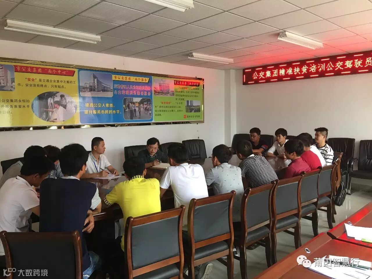 5月19日,公交集团召开精准扶贫培训公交驾驶员13名学员毕业座谈会。总经理郑永忠和学员们亲切座谈交流。