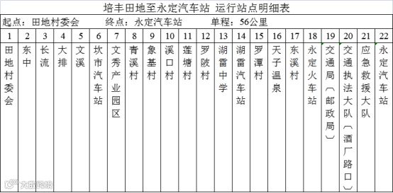 培丰孔夫(燕子岩)至永定汽车站(813线),共往返发班6班次;