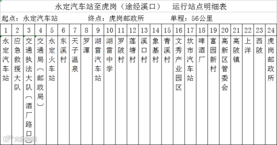 永定汽车站至虎岗(途经溪口)(816线),共往返发班4班次;