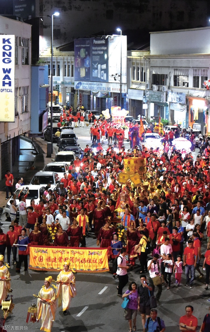 妈祖巡安队伍沿马六甲城区郑和将军路、鸡场街、英雄广场等主要路段巡安,历时4个多小时。(摄影/蔡昊)