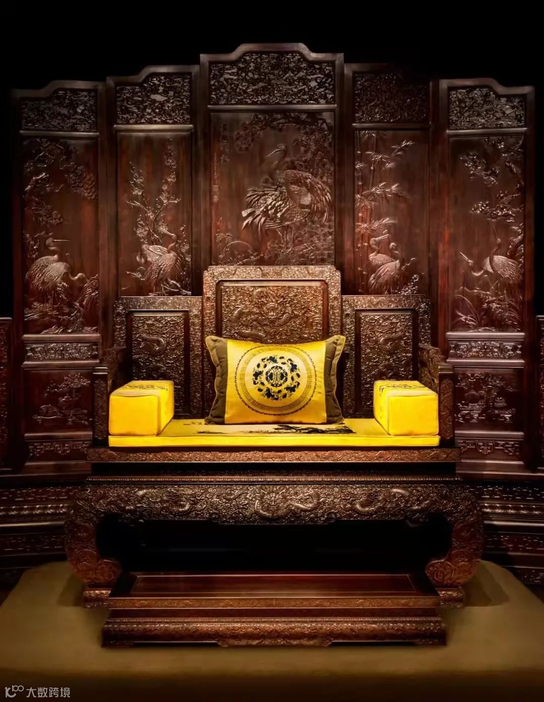 交趾黄檀水龙纹十三件套宝座沙发(图片/黄福忠提供)