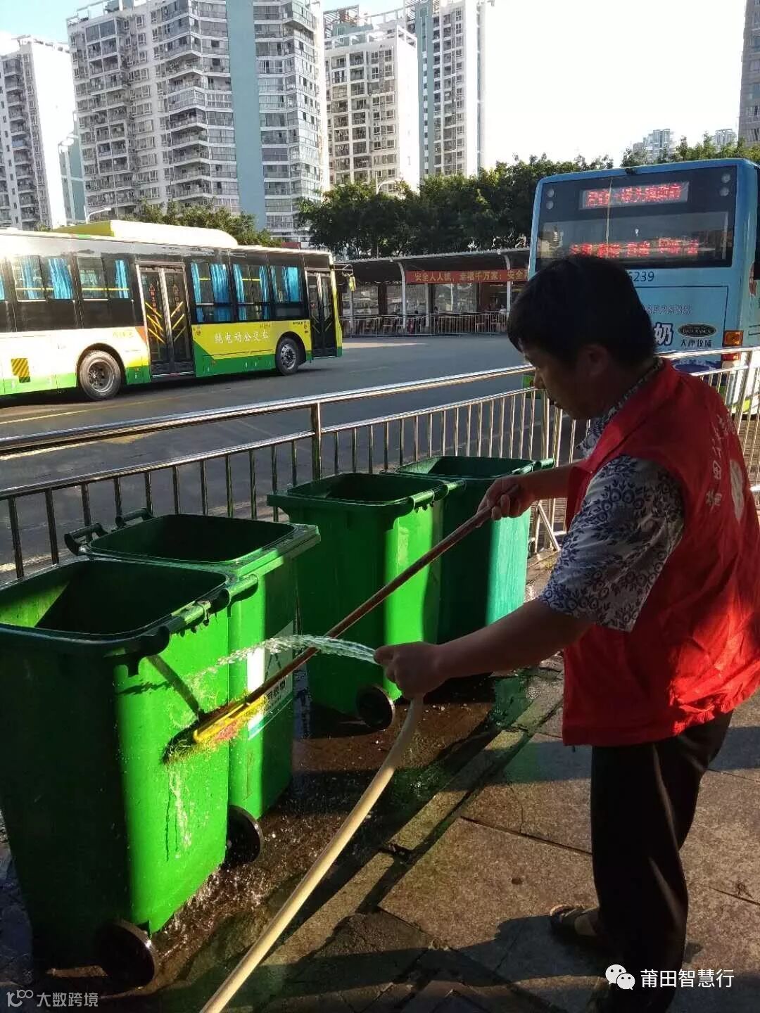城区车队志愿者打扫场站卫生,净化乘车环境。