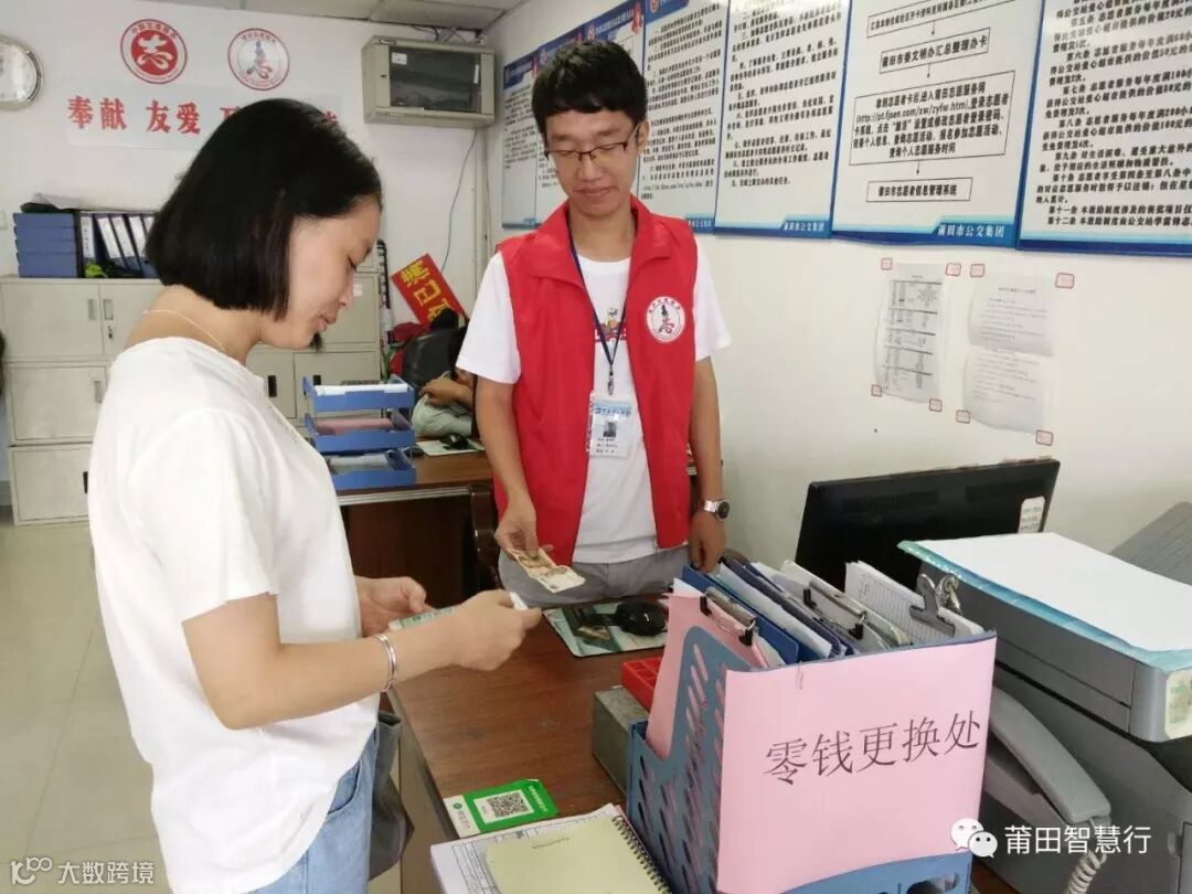 秀屿车队志愿者为候车乘客兑换零钱,用真诚的爱心温暖着这座城市。