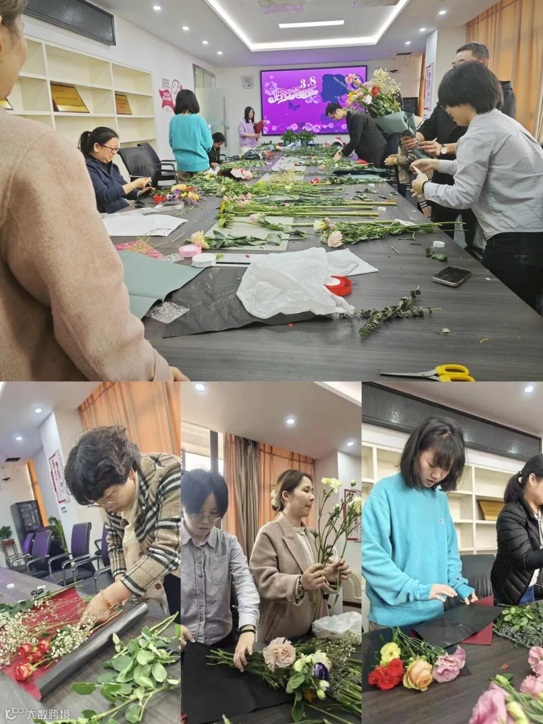 本次活动由女员工们亲自到花卉市场挑选符合女生审美的花卉十余种,桔梗花的花语是永恒的爱;玫瑰花的花语是爱情、勇敢、爱与美;康乃馨的花语是魅力、尊敬之情……