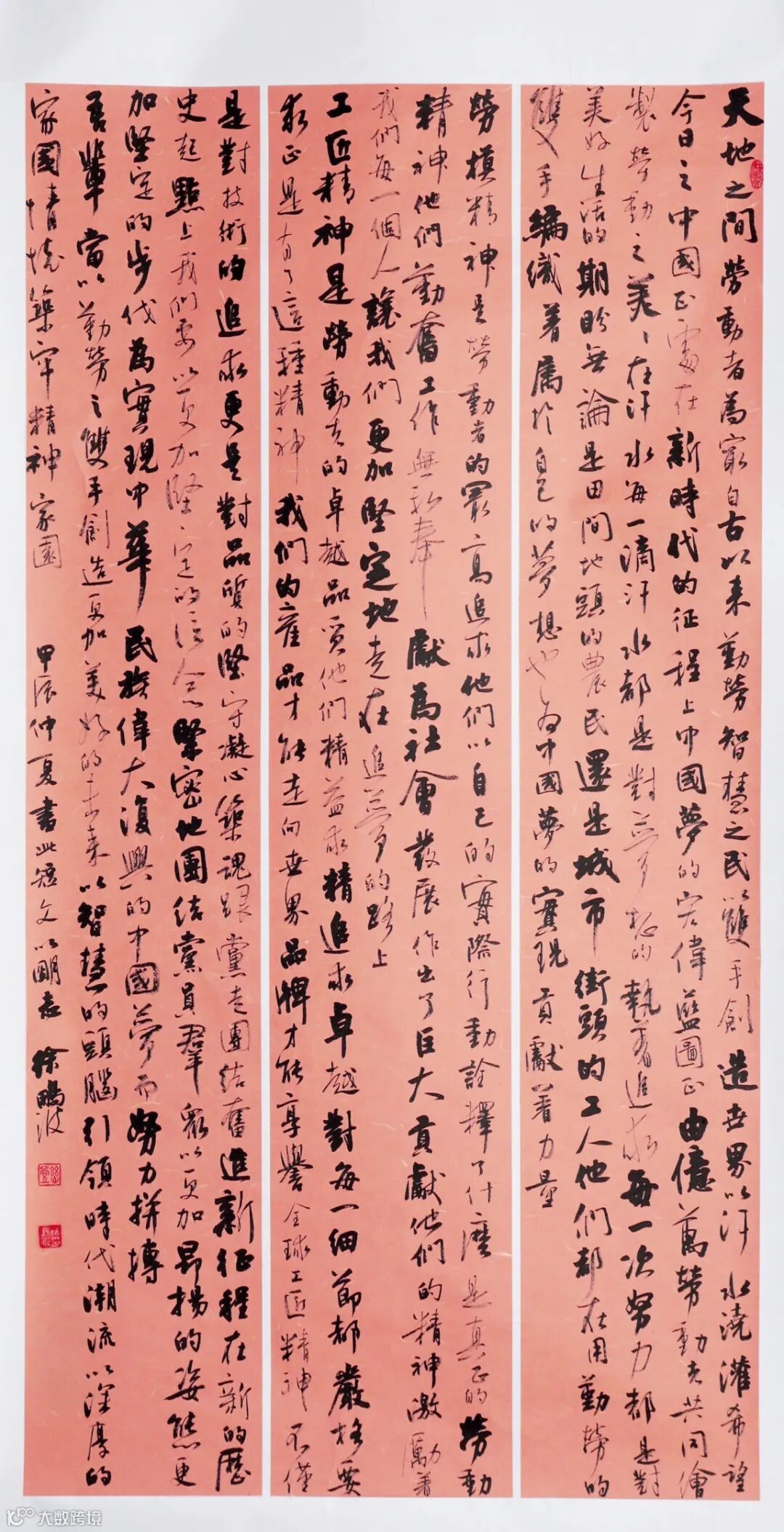 ▍本次评选活动共有来自中国航空摄影家协会等8家社团、中航西飞等13家单位的17名候选人参与评选,2名同志被授予“航空工业集团职工艺术家”荣誉称号,4名同志荣获入围奖。徐鹏波凭借扎实的书法功底与鲜明的艺术风格,在众多候选人中脱颖而出,成功入围“航空工业集团职工艺术家”。