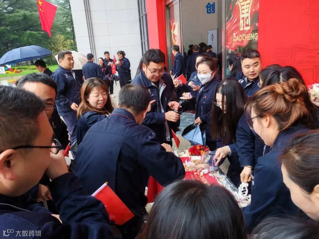 ▍活动现场,每位参与者手中都挥舞着厂庆标识小旗,广场上瞬间被一片“中国红”点燃。随着《今天是你的生日》的温馨的旋律缓缓响起,7名职工从人群中走出,唱响专为宝成创作的庆生歌曲,意外地“快闪”表演将现场的氛围推向高潮。