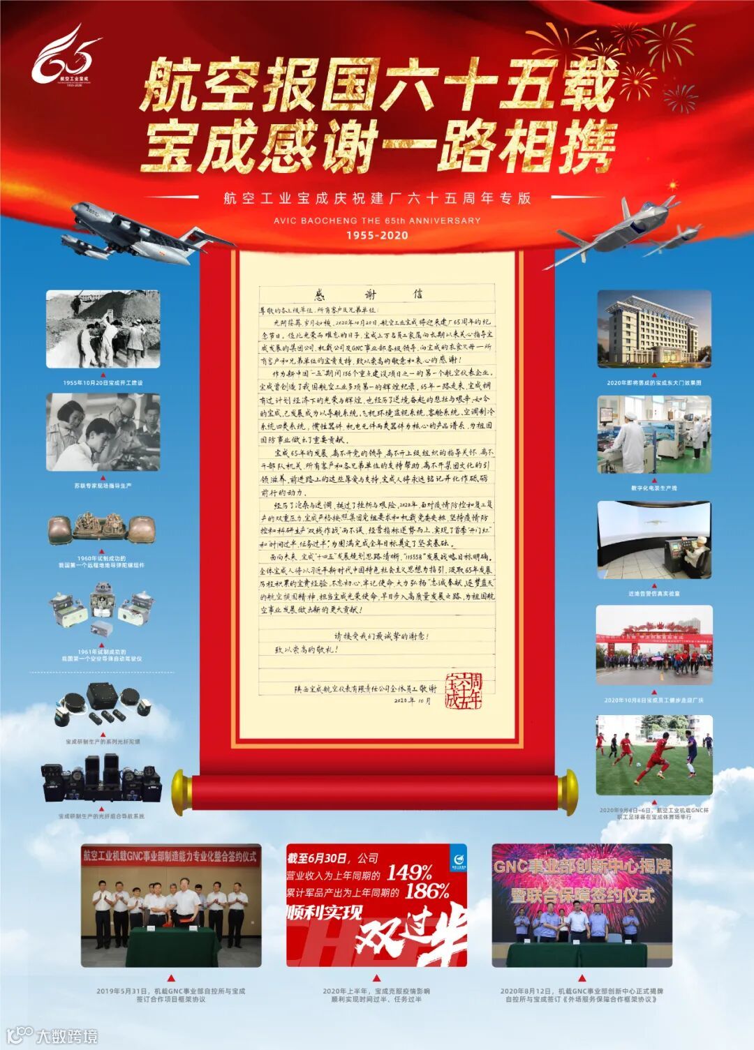 站在七十周年的历史坐标上回望,宝成的成就可圈可点;展望未来,新的使命呼唤更大作为。智能化浪潮汹涌澎湃,绿色航空方兴未艾,空天一体探索无垠……时代赋予了新一代宝成人前所未有的机遇与挑战,宝成人将在新时代航空报国精神引领下,以奋斗姿态传承使命,在新的征程开辟新的未来。