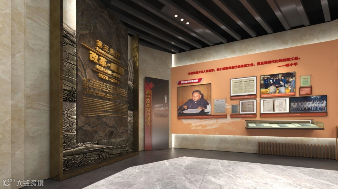 第三展厅“改革 崛起”覆盖6个主题,分别是:推行改革对内搞活、航空科技重点加强、军民结合“两大转变”、武器装备跨代发展、航空动力丰富多元、民机研发积极推进。