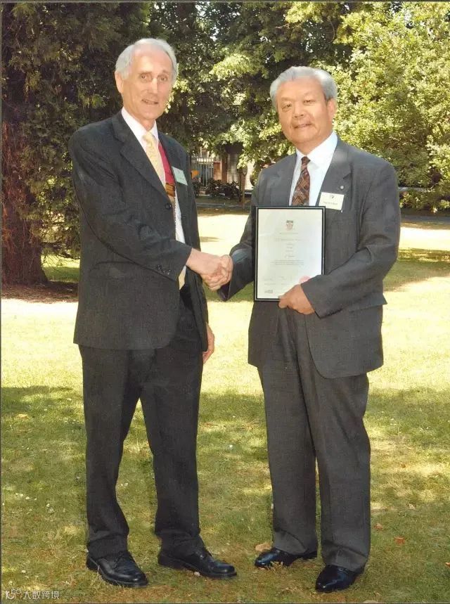 ▲2005年,英国焊接研究所Burdekin教授向关桥颁发Brooker奖牌后合影。