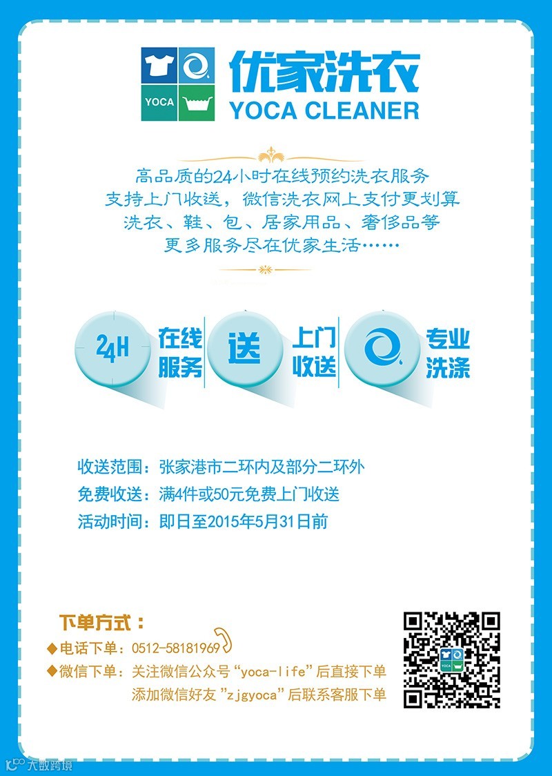 优家洗衣满50元即可免费上门收送!