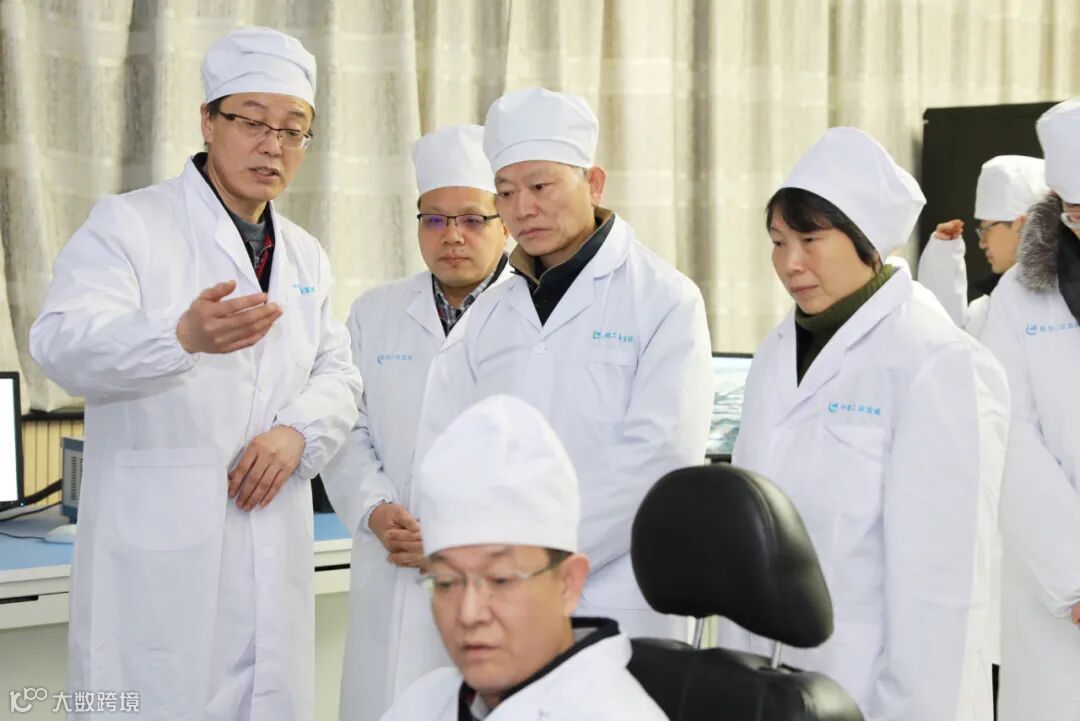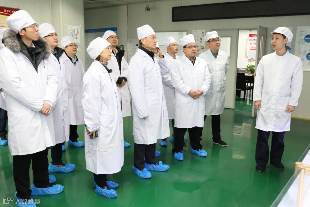 ▍在公司副总经理寇学锋、科技委专委高志远等人的陪同下, 陈迎春一行参观了公司产品展厅、近地告警试验室、装配部及光纤陀螺分厂等科研生产现场。
