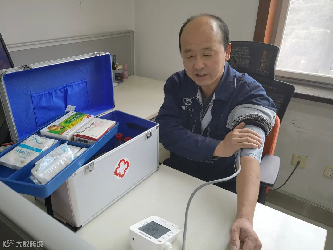 “闺女,你别担心啦,公司给我们配备了医药箱和血压仪,工作之余就可以测量血压了。”患有高血压病的徐师傅在办公室回复女儿的电话。