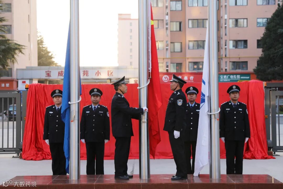 ▍首先举行了庄严的升旗仪式。全体人员面向国旗,升国旗、奏唱国歌,升司旗、奏唱司歌。