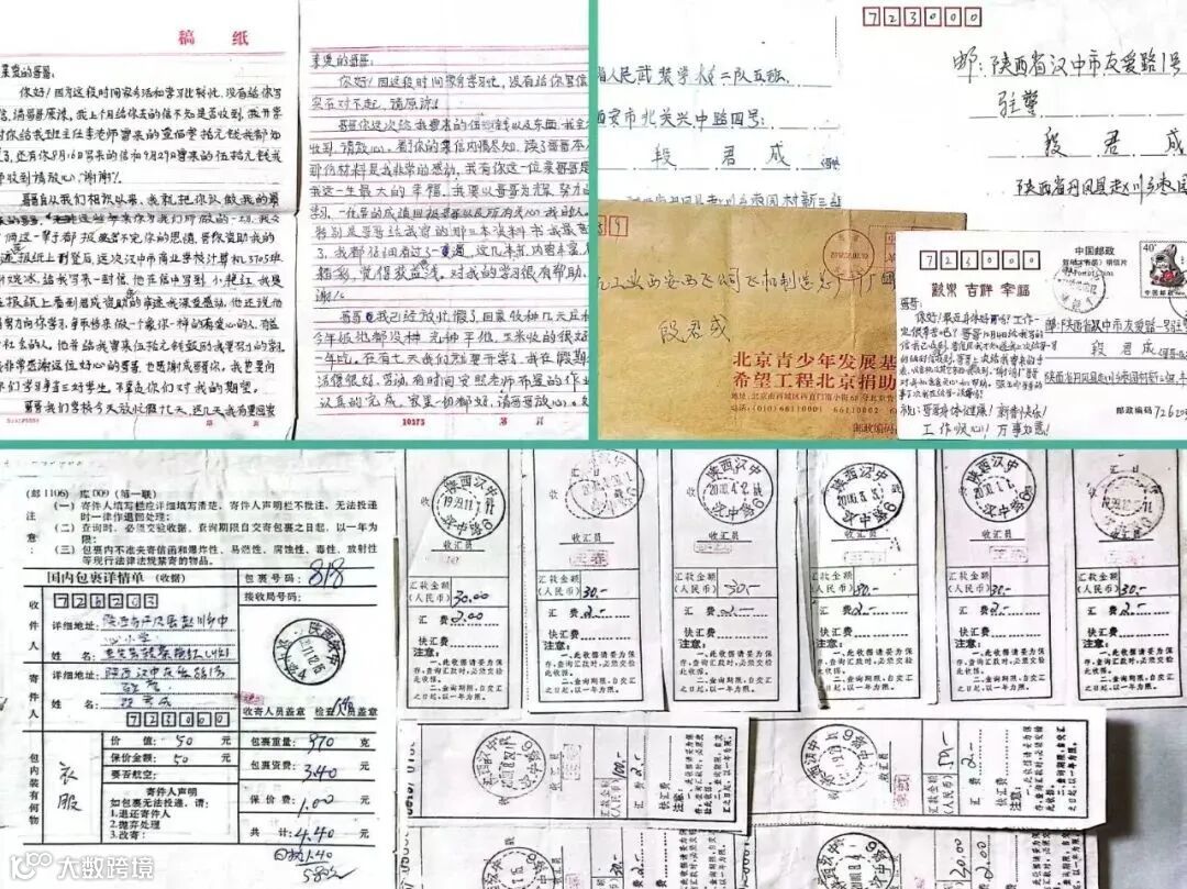 ▲段君成与蔡艳红的部分书信往来和汇款回执