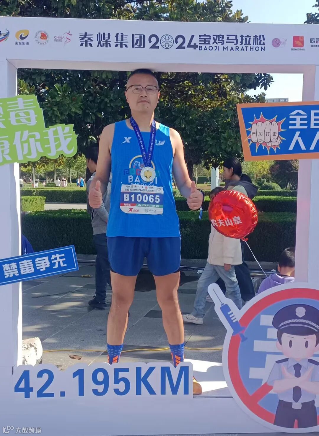 10月27日宝鸡马拉松,这是我第一次参加全程马拉松,这么长的距离,心里既紧张,又兴奋,期盼在比赛中取得好成绩,最重要的其实是我们要安全完赛。当跑到35公里的时候,感觉体力明显下降,尽管已经筋疲力尽,但赛道两旁的加油呐喊声不断,让我感到了一丝温暖,瞬间给了我精神力量,继续抬头前行。每一公里都像是一道坎,让人在放弃与坚持之间摇摆不定。最后心里憋着一股劲儿,只要不停下来,坚持不抛弃、不放弃的精神就能到终点。当远远看到拱门最后冲向终点的那一刻,所有的一切都化为不可言表的成就感。人生首马, 努力过、拼搏过,不畏艰险,勇敢前行直到感动自己!