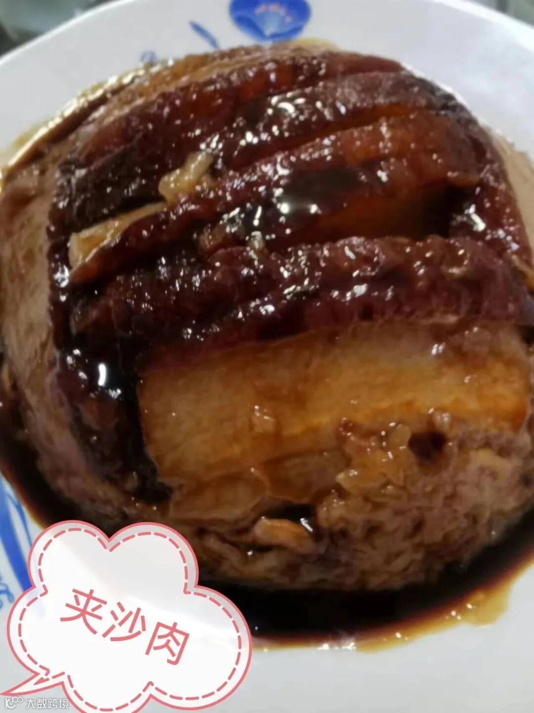 夹沙肉又叫甜烧白,夹沙肉是用猪五花肉、豆沙等经过几道工序烹制而成,吃起来外酥里嫩。