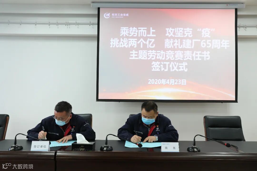 在公司召开的2020年一季度经济运行分析暨军品工作会上,生产部部长周磊代表公司对“乘势而上,攻坚克“疫”,挑战两个亿,献礼建厂65周年”为主题的劳动竞赛进行了专项安排,并与制造部、装配部等单位签署了劳动竞赛责任书。