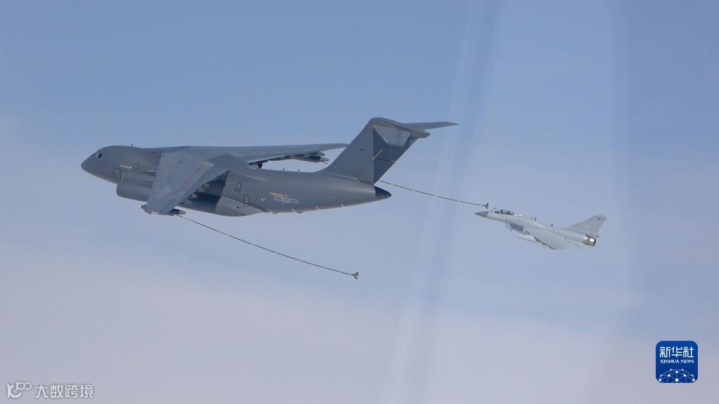 ▲“联合利剑”演习中,战机进行空中加油
