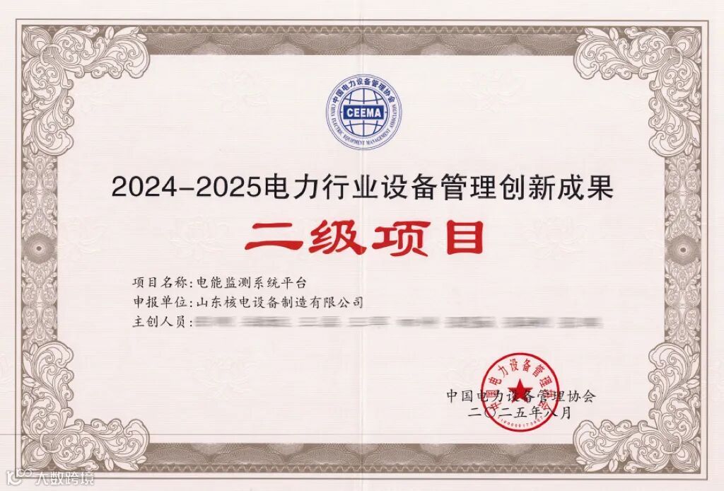 近日,经国家电投推选,由国核设备(以下简称公司)申报的《电能监测系统平台》与《移动式全场景焊接机器人研究及核电示范应用》两项创新成果荣获2024-2025年度全国电力行业设备管理创新成果二等奖。