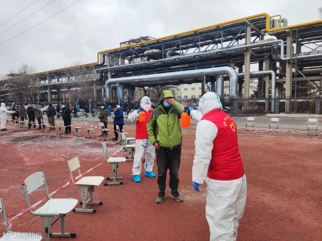 兵器工业集团吉林江机特种工业成立青年防疫志愿者队伍,支援吉化体育场核酸检测采样点。