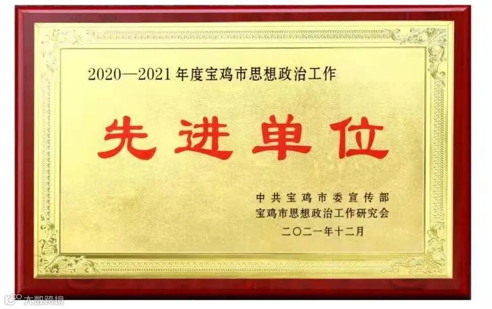 为表彰先进、推广经验,充分发挥典型示范作用,激发全市思想政治工作战线干事创业的责任感和使命感,日前,中共宝鸡市委宣传部、宝鸡市思想政治工作研究会对2020—2021年度宝鸡市思想政治工作先进单位优秀思想政治工作者进行了通报表彰,宝成荣获2020-2021年度宝鸡市思想政治工作先进单位荣誉称号,党委工作部徐小淙同志荣获2020-2021年度宝鸡市优秀思想政治工作者荣誉称号。