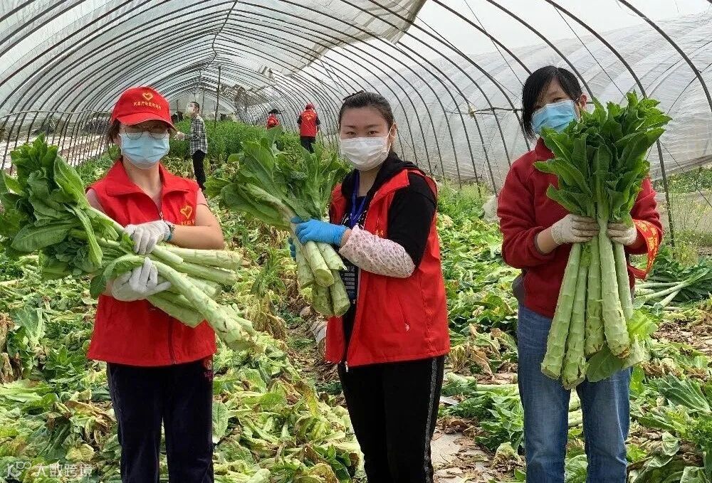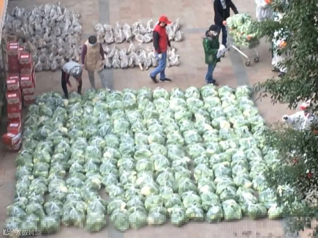 2月7日志愿者们在分发四川人民捐赠的爱心花菜
