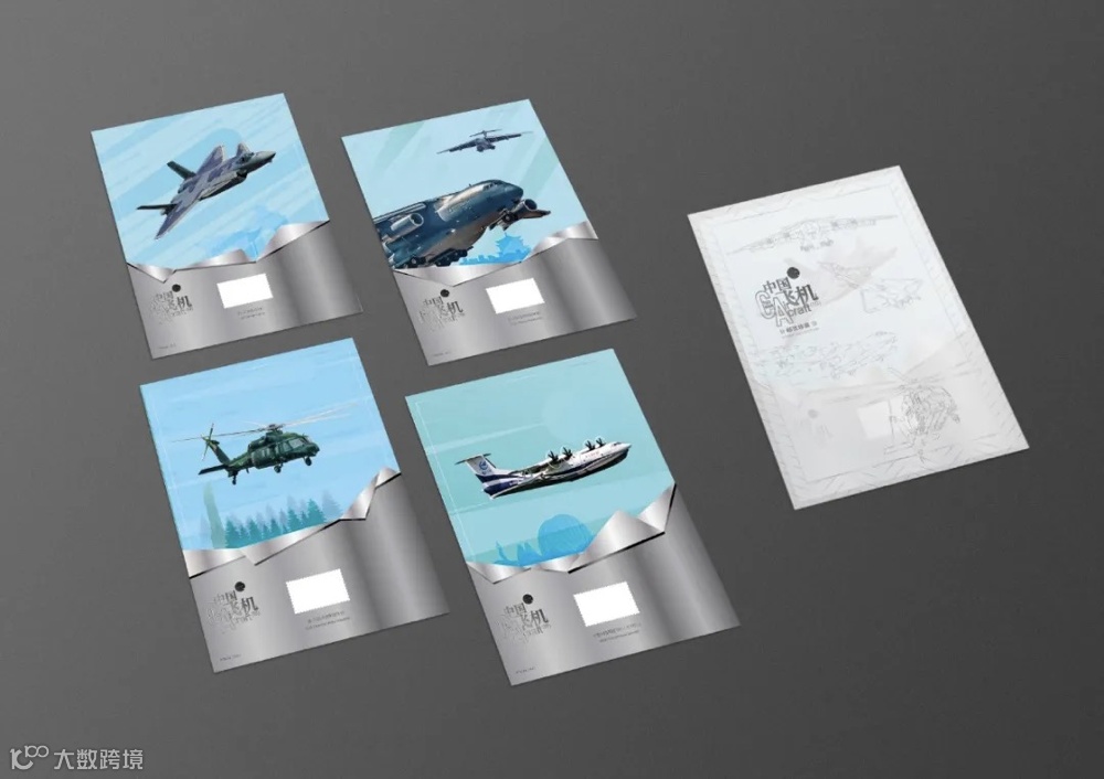 该套邮票由于雪设计,北京邮票厂有限公司胶版工艺印制。邮票画面整体采用银灰色调,根据4型飞机的不同特点,采用针对性的构图突出了4架飞机的显著特征,并通过写实风格加以呈现,营造出强烈的临场感和视觉冲击力,体现了“大国重器”的科技感和力量感。