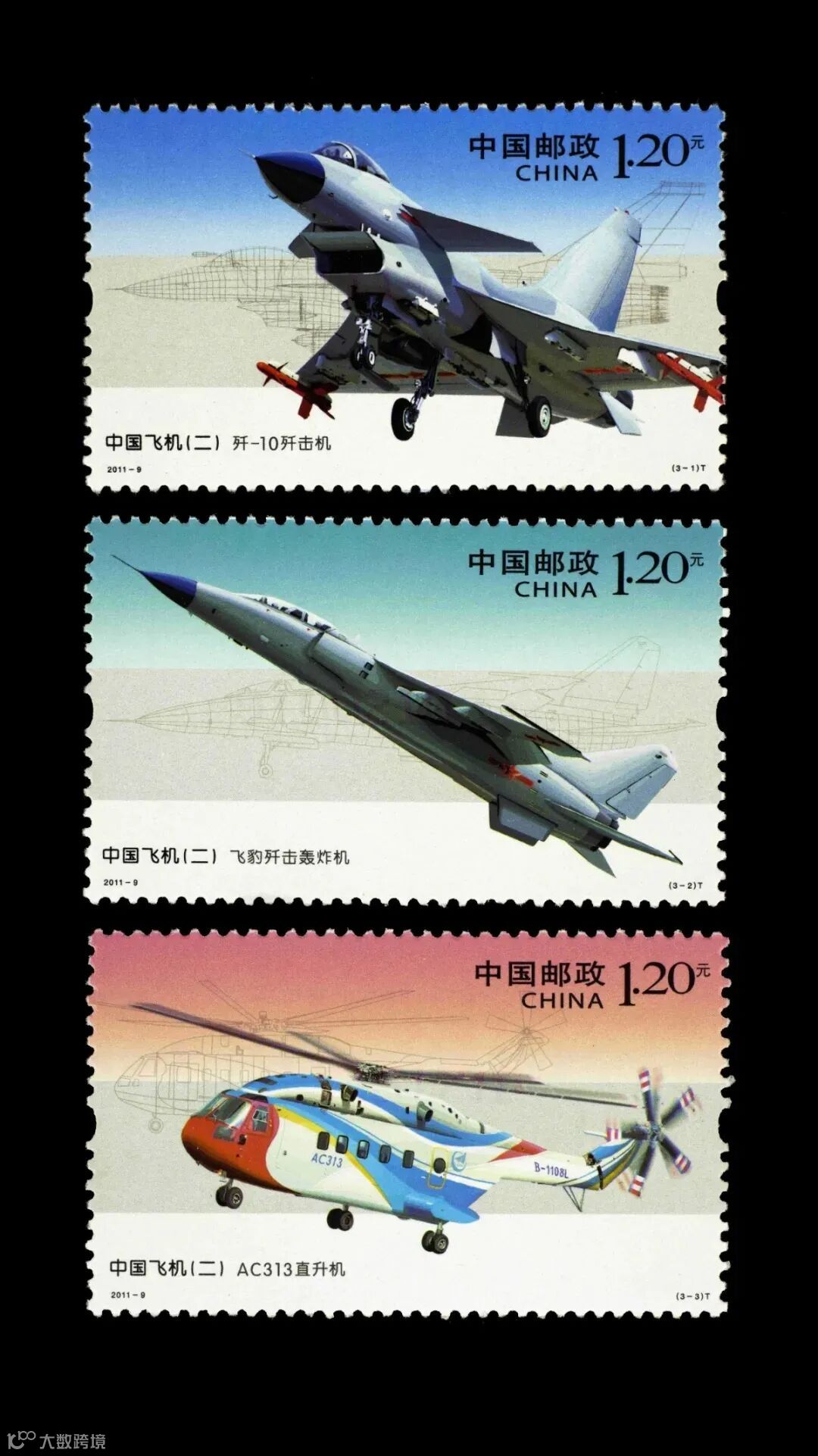 2011年4月17日,发布的中国飞机(二)全套邮票。