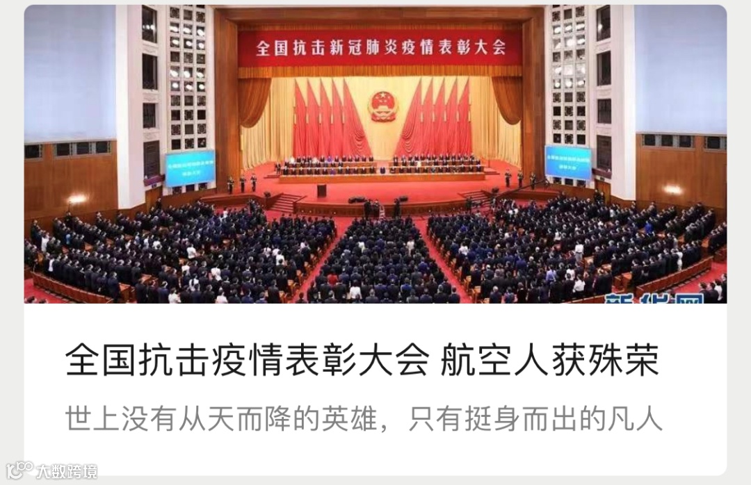 9月8日的全国抗击新冠肺炎疫情表彰大会上