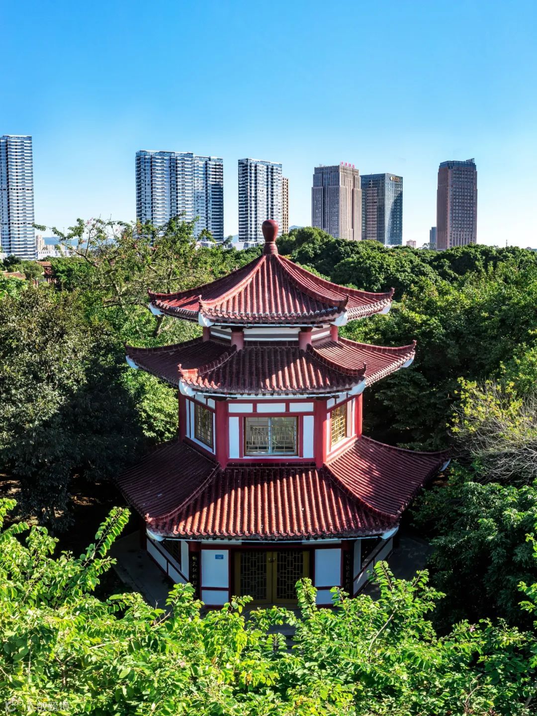 高45.4米,七层八角楼阁式实心石塔,坐落于登瀛阁旁,黄公度少年时在此读书。(摄影/蔡昊)